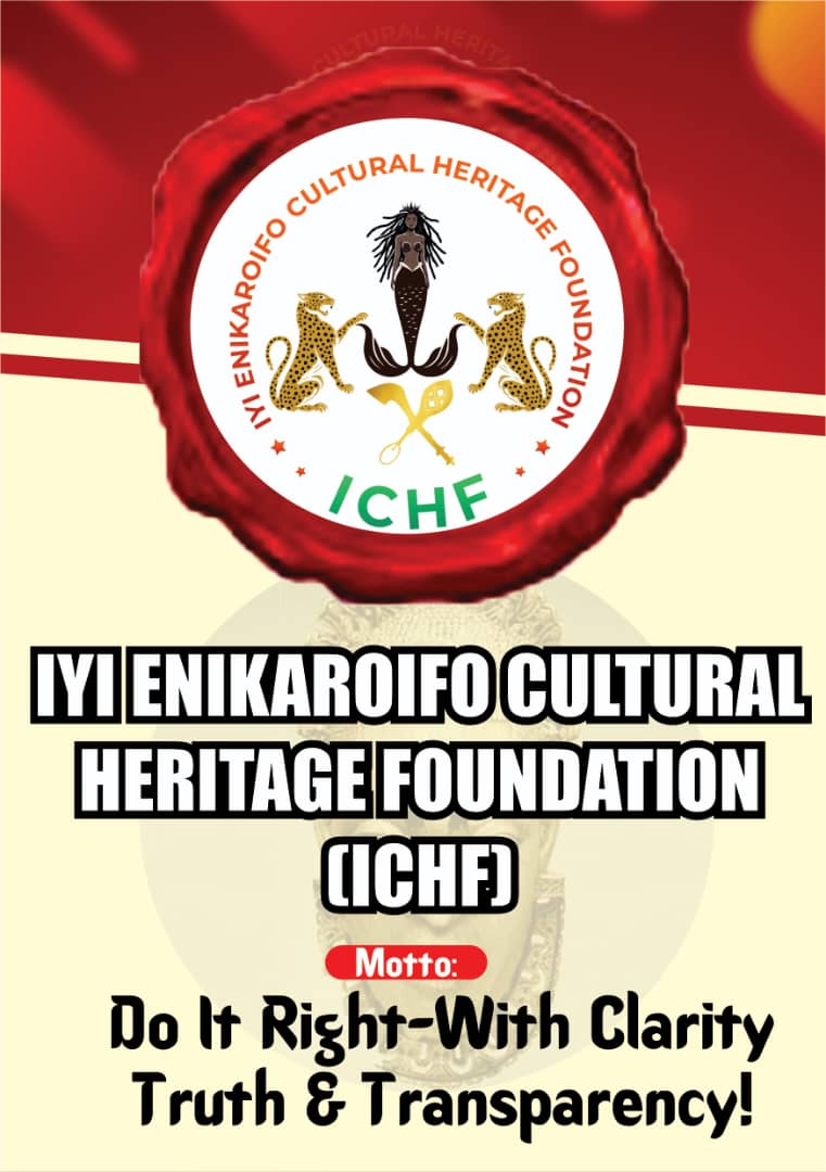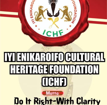 π IYI ENIKAROIFO CULTURAL HERITAGE FOUNDATION (ICHF) Motto: Do It Right β With Clarity, Truth & Transparency! The IYI ENIKAROIFO CULTURAL HERITAGE FOUNDATION (ICHF) stands as a beacon of truth, justice, and cultural pride. Our mission is to preserve, promote, and protect the rich cultural values and ancestral heritage that define our people. We believe that tradition is not just history β it is the heartbeat of identity and the foundation of moral clarity. Through community programs, cultural education, and heritage awareness, ICHF continues to uphold the principles of truth, integrity, and transparency in all its endeavors. Our goal is to inspire the next generation to honor their roots, celebrate their heritage, and carry forward the spirit of righteousness in every sphere of life. β¨ Together, we say β Do it right, with clarity, truth, and transparency! Because when culture lives, the people thrive. #ICHF #IyiEnikaroifo #CulturalHeritage #TruthAndTransparency #AfricanTradition #EdoCulture #CulturalPride #DoItRight